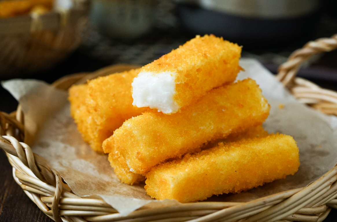 第七步:牛奶條先裹上一層淀粉,再裹上蛋液,面包糠里轉(zhuǎn)一圈(這個過程最好用手進(jìn)行,用筷子容易夾碎)