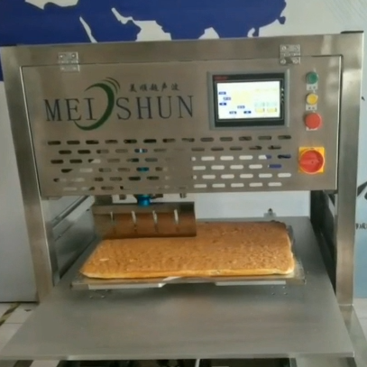 該設備配備雙把超聲波刀片,既可切方蛋糕,也可同時切兩個圓蛋糕,還具有自動上水洗刀、安全光柵的人性化功能,效率高,更方便