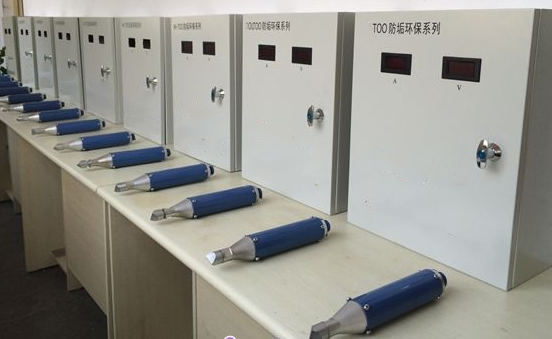 The ultrasonic descaling and anti-scaling equipment is mainly composed of an ultrasonic generator, an ultrasonic signal transmission cable, an ultrasonic energy converter and the pipeline which assembled with an ultrasonic transducer. According to the installation mode, it can be divided into three types: external type, embedded type and built-in type.